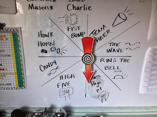 Here is a magnetic spinner I use on my dry erase board for when I want to add some randomness to a game.  In this case, the spinner was for “prizes” when a player answered correctly.