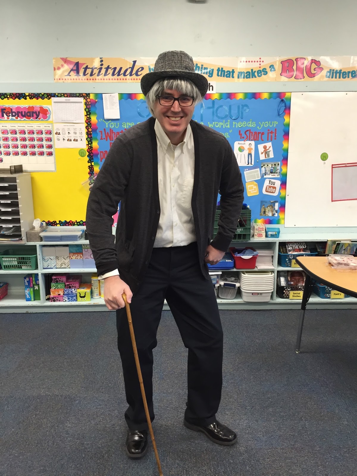 I’ll say this, nothing makes you feel old like back pain. I was feeling and walking a lot like the guy I dressed up as for spirit day last year.